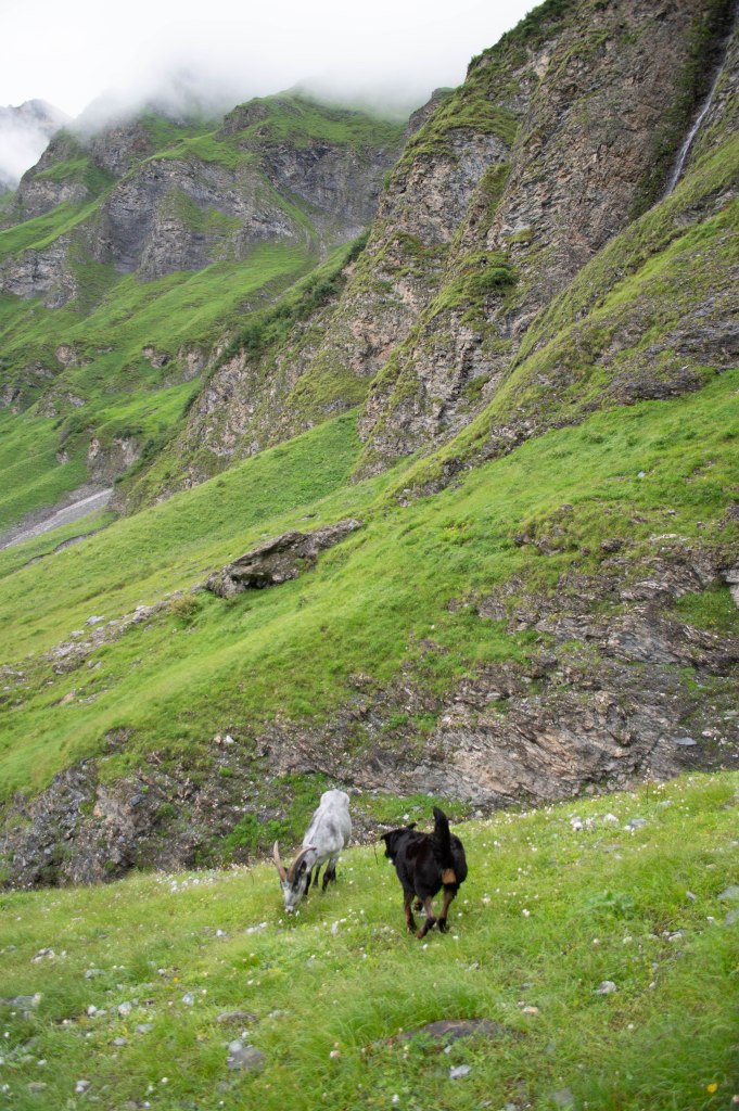 An diesem Tag war es ziemlich feucht – wie so oft, wenn man sich bis zuhinterst ins Safiental wagt. Aber wir haben dem Wetter getrotzt. Hochgekraxelt, Schritt für Schritt. Unterwegs sammelte ich Frauenmänteli für einen feinen Tee, während Max und Florentine sich immer wieder mal in die Wolle kriegten.