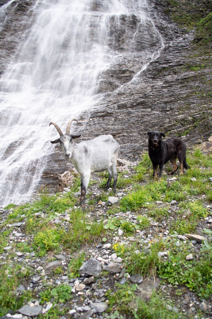 Oben angekommen: Stille. Nebel. Und dann doch – eindrückliche Bilder. Ein Wasserfall, der sein Lied in den Tag singt. Und mittendrin wir.
