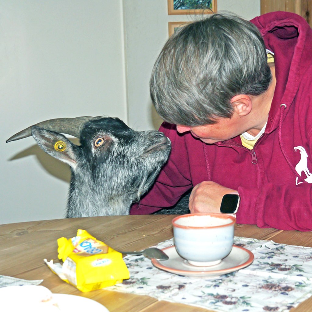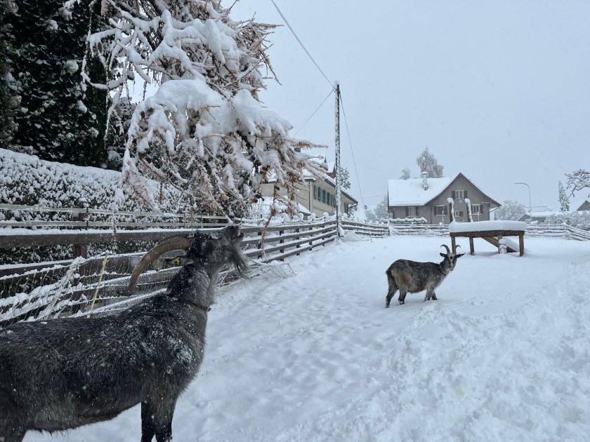 In Hohentannen sind wir bekannt. Und so habe ich einige Anrufe bekommen, dass die Ziegen los seien. „Alles unter Kontrolle“, habe ich gesagt. Denn Minni und Amiro waren bereits im Stall.
