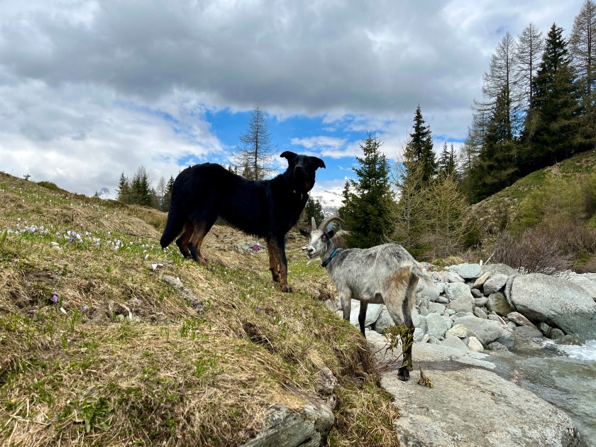 Mindestens einmal im Jahr fahre ich ins Averstal. Dort habe ich schon als Kind Ferien gemacht. Wie immer begleiten mich mein Ziegenbock Max und meine Beauceron-Hündin Florentine. Wandern mit Geissen macht so viel Freude. Und bald wird Max eine richtige Packgeiss. Ich gewöhne ihn langsam an den Sattel. So wird er bald Gepäck tragen können. Kommt mit – wir nehmen euch auf die Reise ins Wunderland.