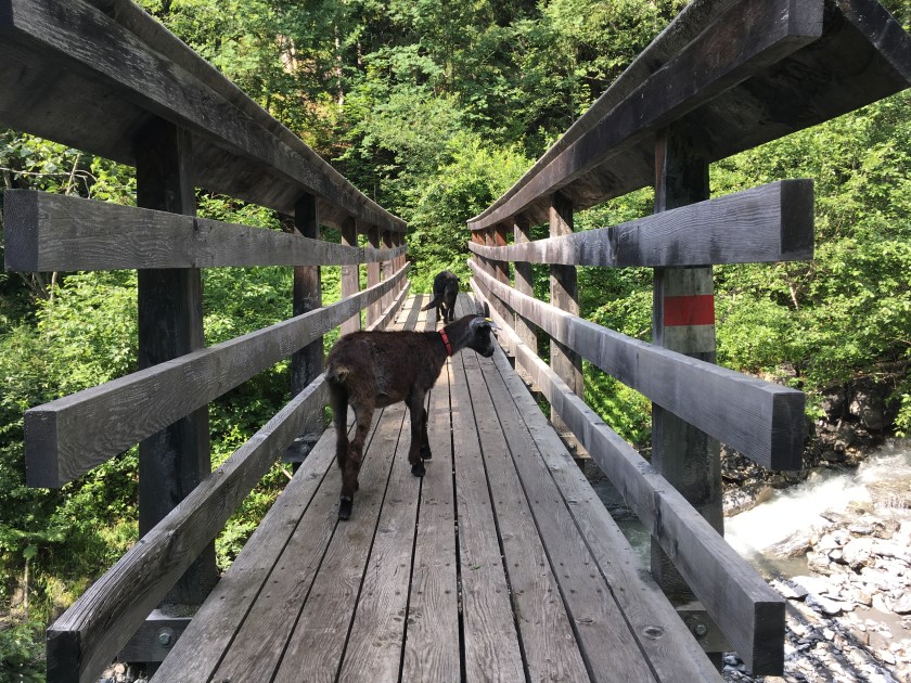 Ziegen mögen Regen, ja ganz generell Wasser, nicht. Und trotzdem ist es auf der Weide schöner als im Stall. So stehen sie halt unter und warten, bis es Abend ist.